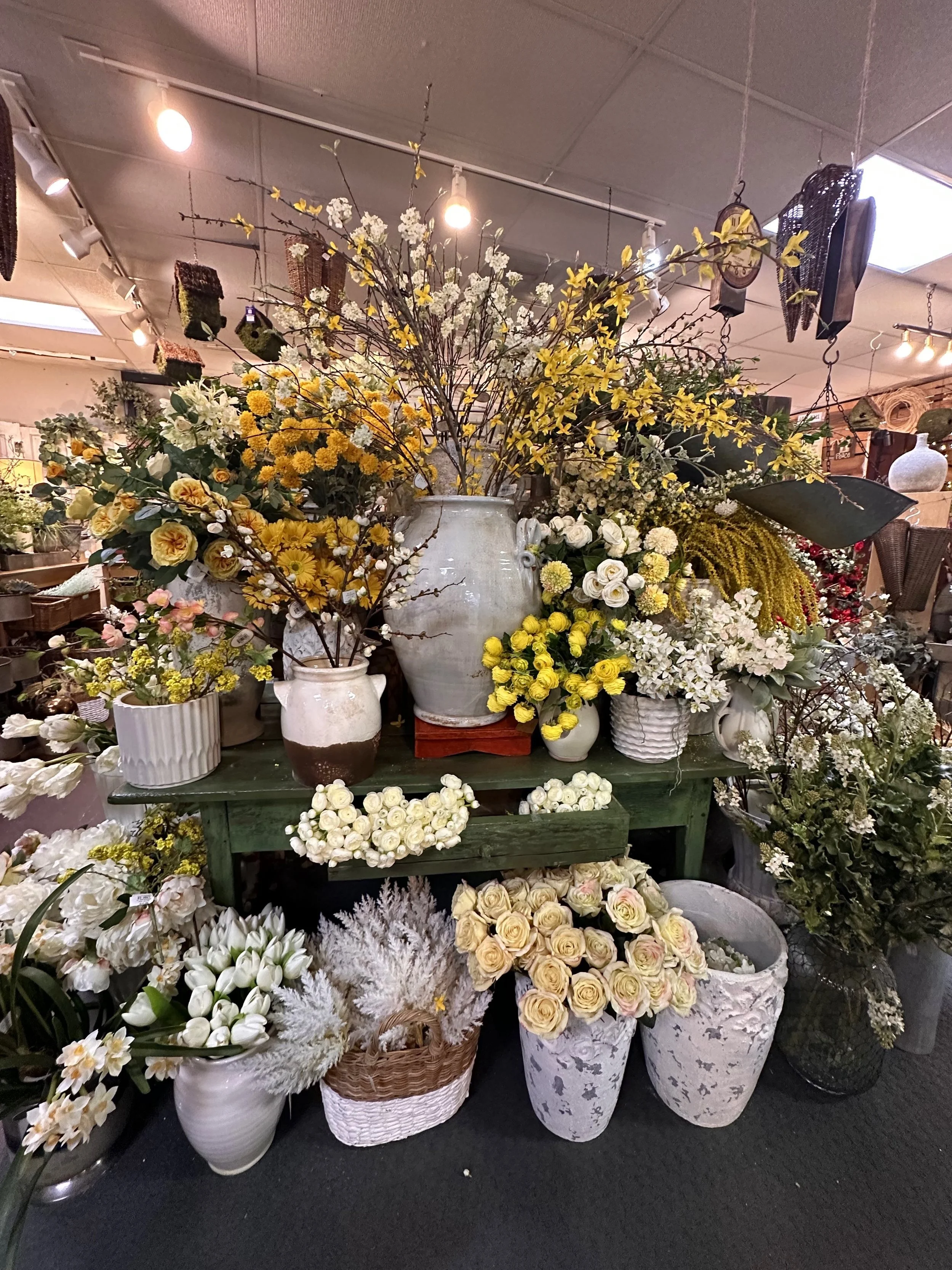 I have nothing to add to this picture other than these are some of the most beautiful, realistic faux flowers I have seen in a long time. They had set them up in the most perfect way, and they had a large grouping of berries that looked so real I had to touch them to make sure.