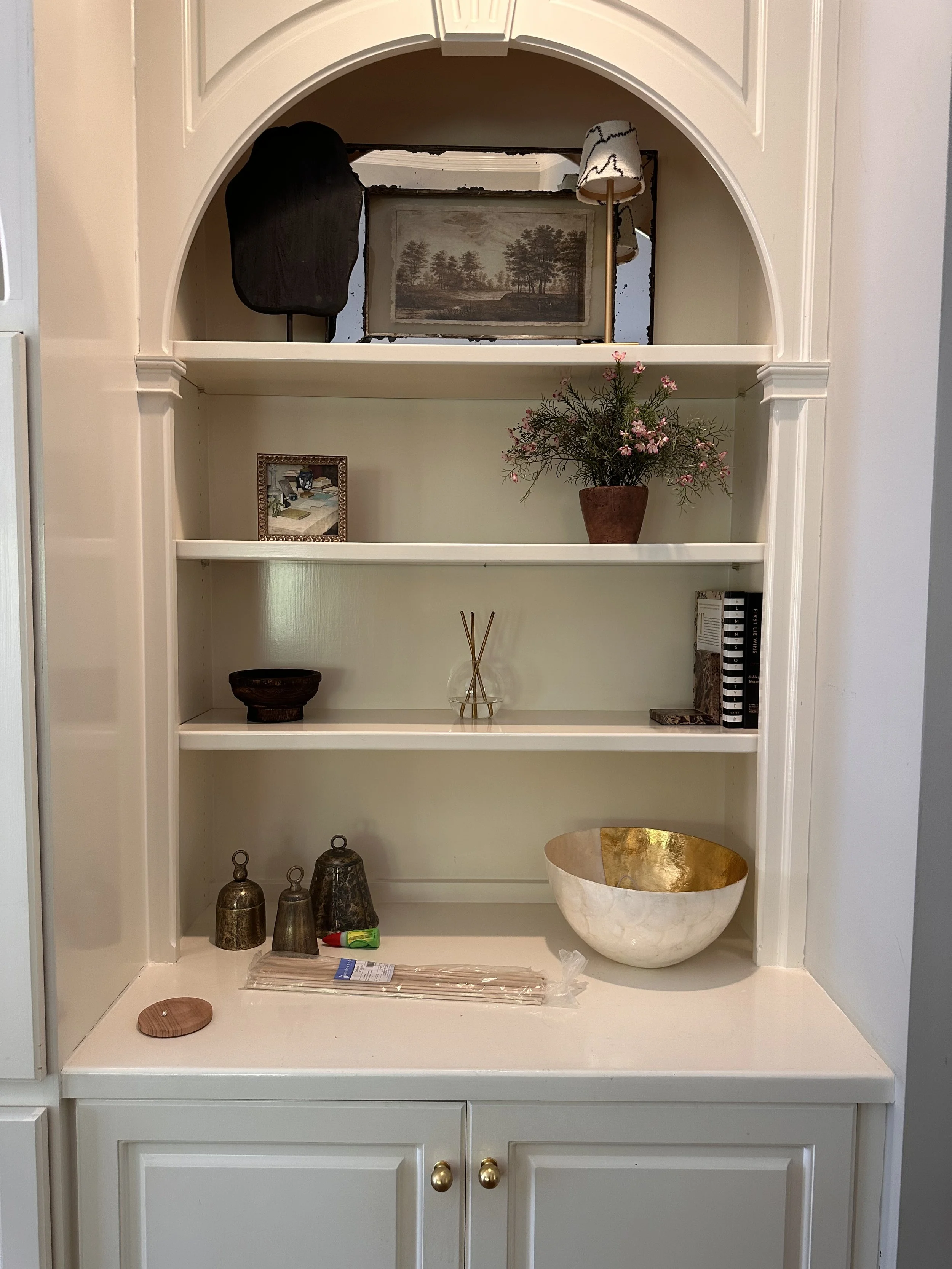 This built-in had great potential, but it felt a little plain and needed that extra layer of detail. I knew small gold gallery rails would instantly take it to the next level.