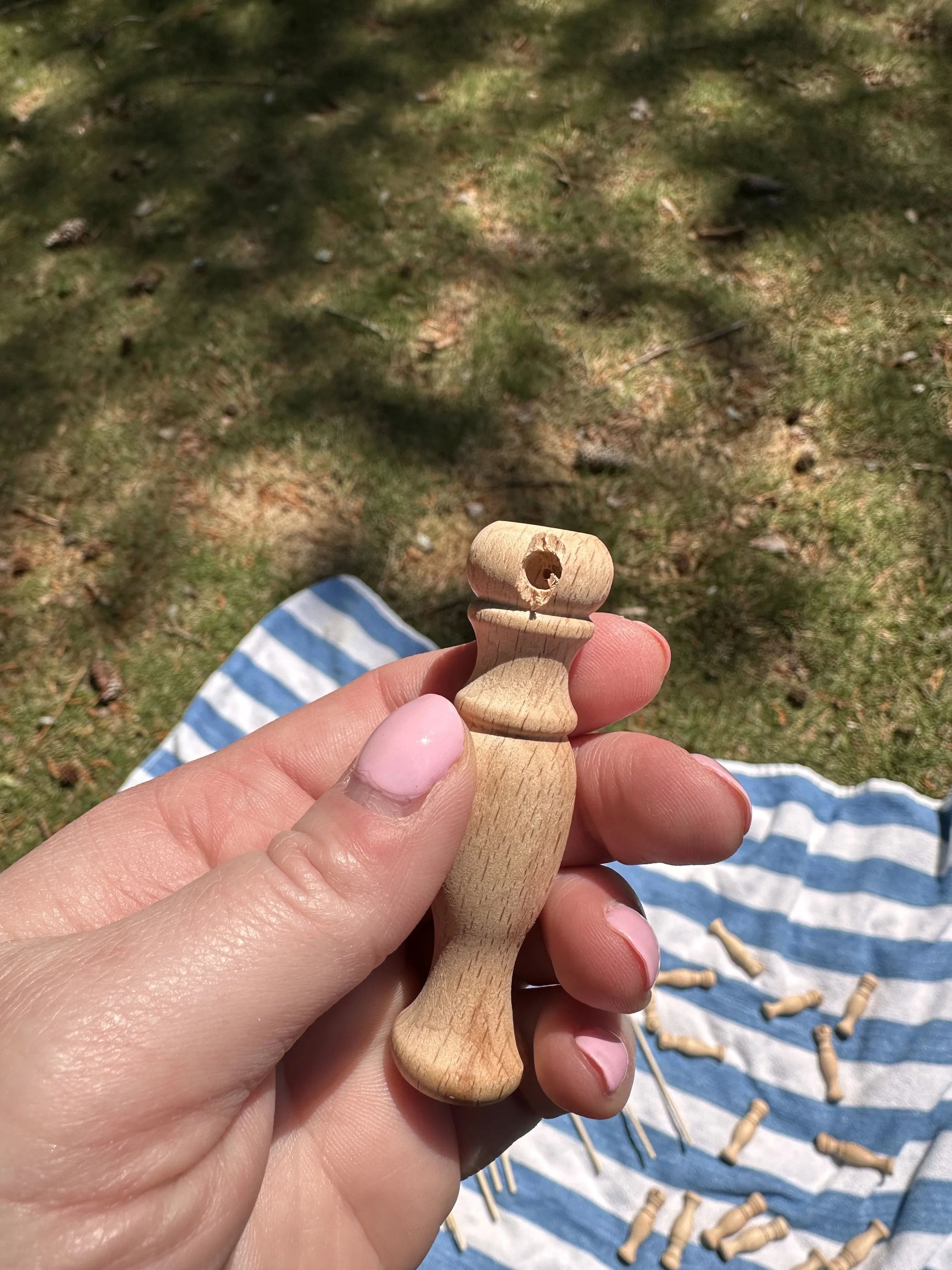 Once the paint dried, it was time to assemble. I threaded the dowels through the spindles to create each mini railing and then secured them to the sides of the shelves with glue.