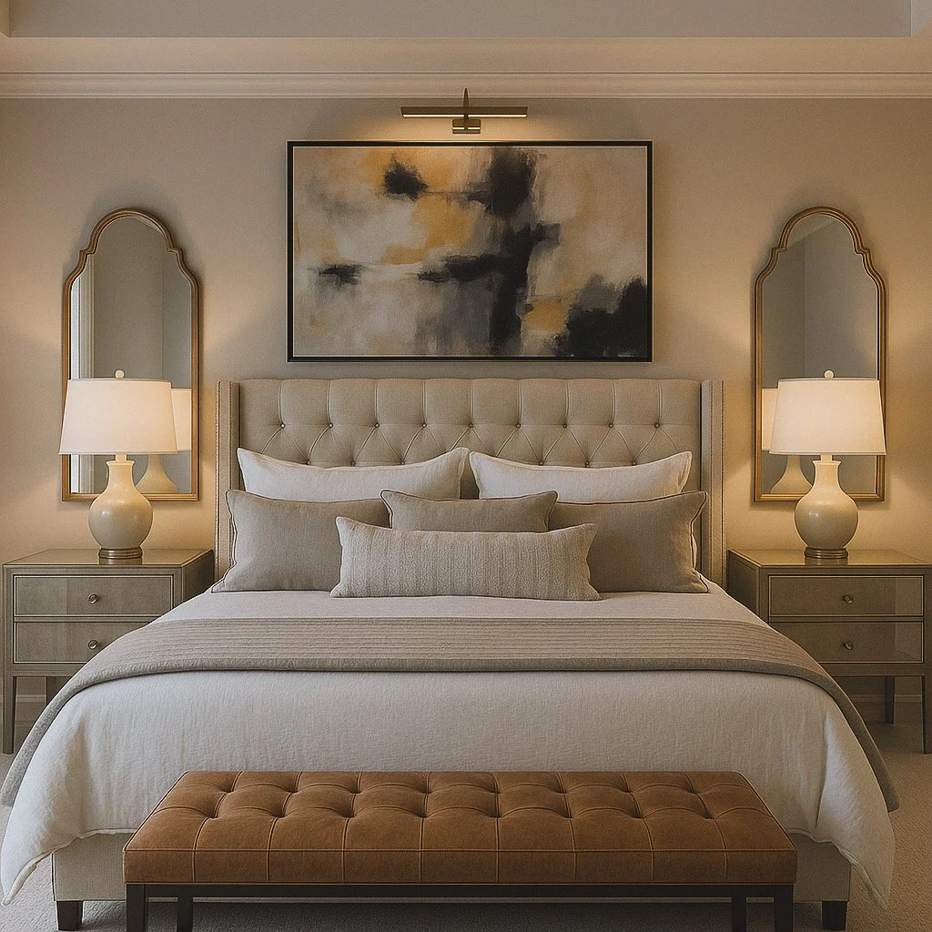 Add a candle, bench, or tray nearby. A styled nightstand or foot-of-bed bench brings it all together.