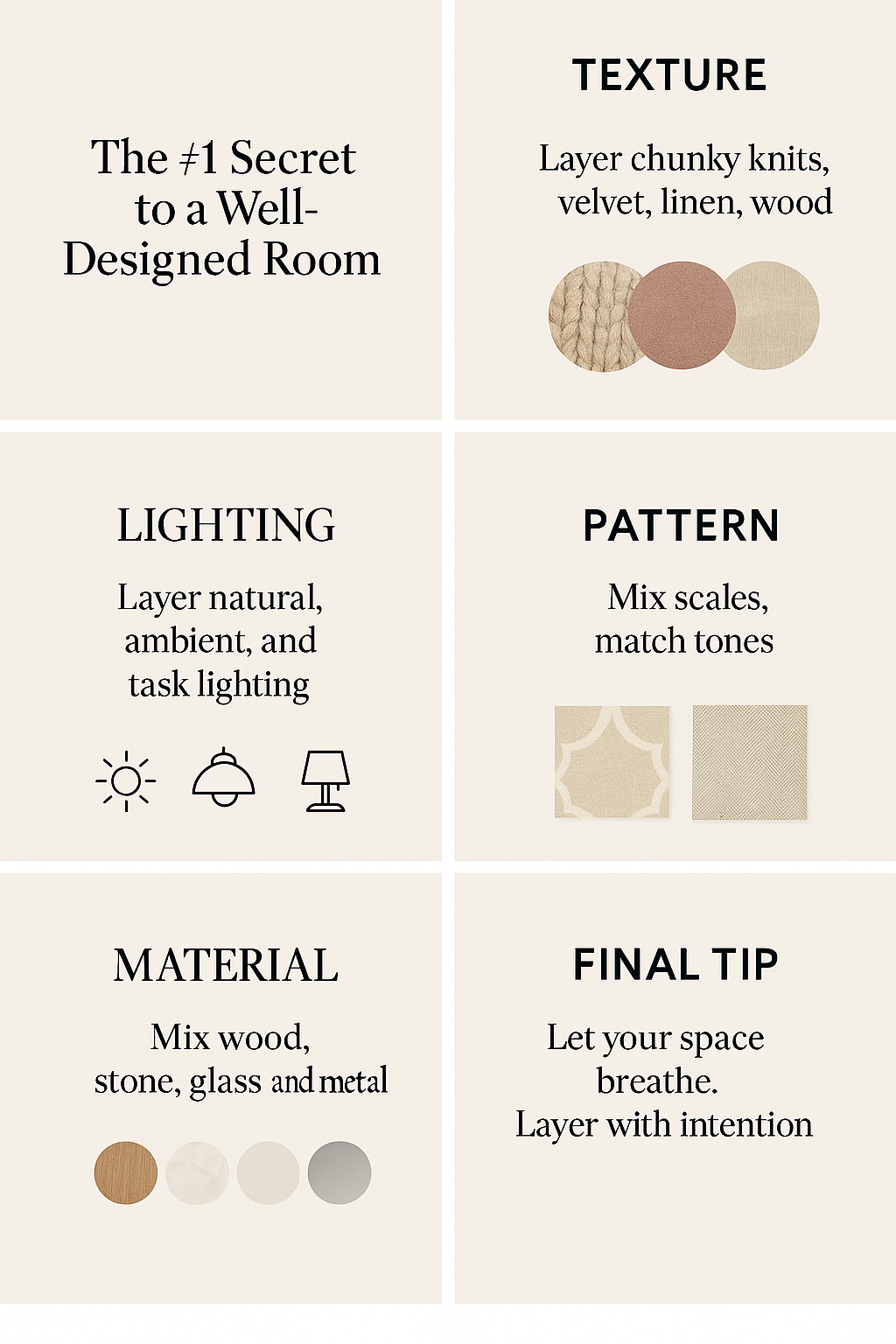 Layering is the behind-the-scenes magic that professional designers use to bring a room to life. It’s the art of mixing textures, colors, patterns, and materials in a way that feels natural but intentional — not too crowded, not too sparse, just perfectly lived-in.